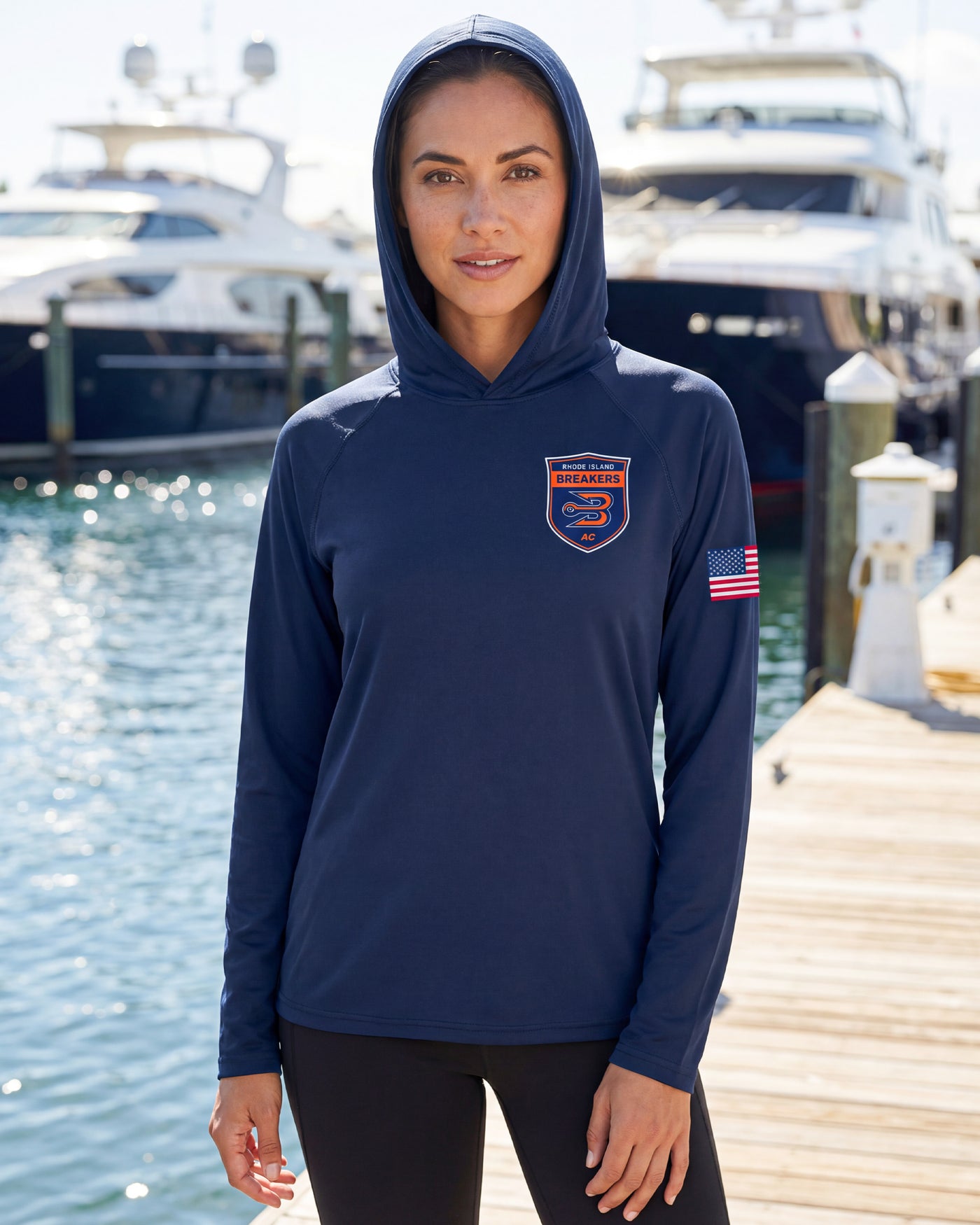 RI Breakers AC Navy Performance Hooded Fishing Shirt